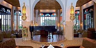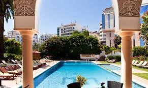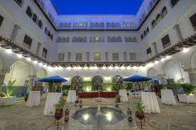 El Minzah Hotel Tanger vous emmènera dans les délices mystérieux du Maroc avec son service cinq étoiles et sa gastronomie exquise. De véritables boiseries arabesques, des tapis orientaux et des portes cintrées vous accueillent dans le hall, où vous pourrez déguster du thé marocain traditionnel. De nombreuses parties de la propriété offrent une vue imprenable sur la baie de Tanger et son port très fréquenté (marina dans un futur récent). Le patio andalou forme le cœur de l'hôtel, avec un portail en grès magnifiquement sculpté, des portes en bois cloutées en fer et un charme d'antan. Ce patio est exceptionnellement beau, offrant des options de restauration en plein air matin et soir. Des chambres confortables dans un cadre serein distinguent El Minzah Hotel Tanger comme un établissement cinq étoiles avec toutes les commodités de sa catégorie, ainsi qu'une touche andalouse. Il y a 140 chambres climatisées élégamment meublées, dont 17 suites. Presque toutes les chambres font face au soleil et offrent des vues sublimes sur les jardins, la cour ou la baie de Tanger et la Méditerranée. Internet sans fil est disponible dans toutes les chambres et dans les espaces publics. Il y a plusieurs restaurants et bars dans l'hôtel. Le restaurant El Erz propose une cuisine internationale qui séduira tous les goûts, tandis qu'El Korsan est célèbre pour ses spécialités marocaines telles que le couscous et le tajine. El Minzah Wellness, un club de remise en forme sophistiqué proposant des activités de remise en forme et des soins SPA, vous transportera dans un autre monde de santé et de détente. Vous pourrez vous détendre dans le sauna, le bain à vapeur ou le bain turc après un plongeon dans la piscine. Un salon de beauté et un bar Venus se trouvent également sur place. L'hôtel est également à proximité du Royal Golf Country Club, ainsi que des écuries pour l'équitation et des courts de tennis.